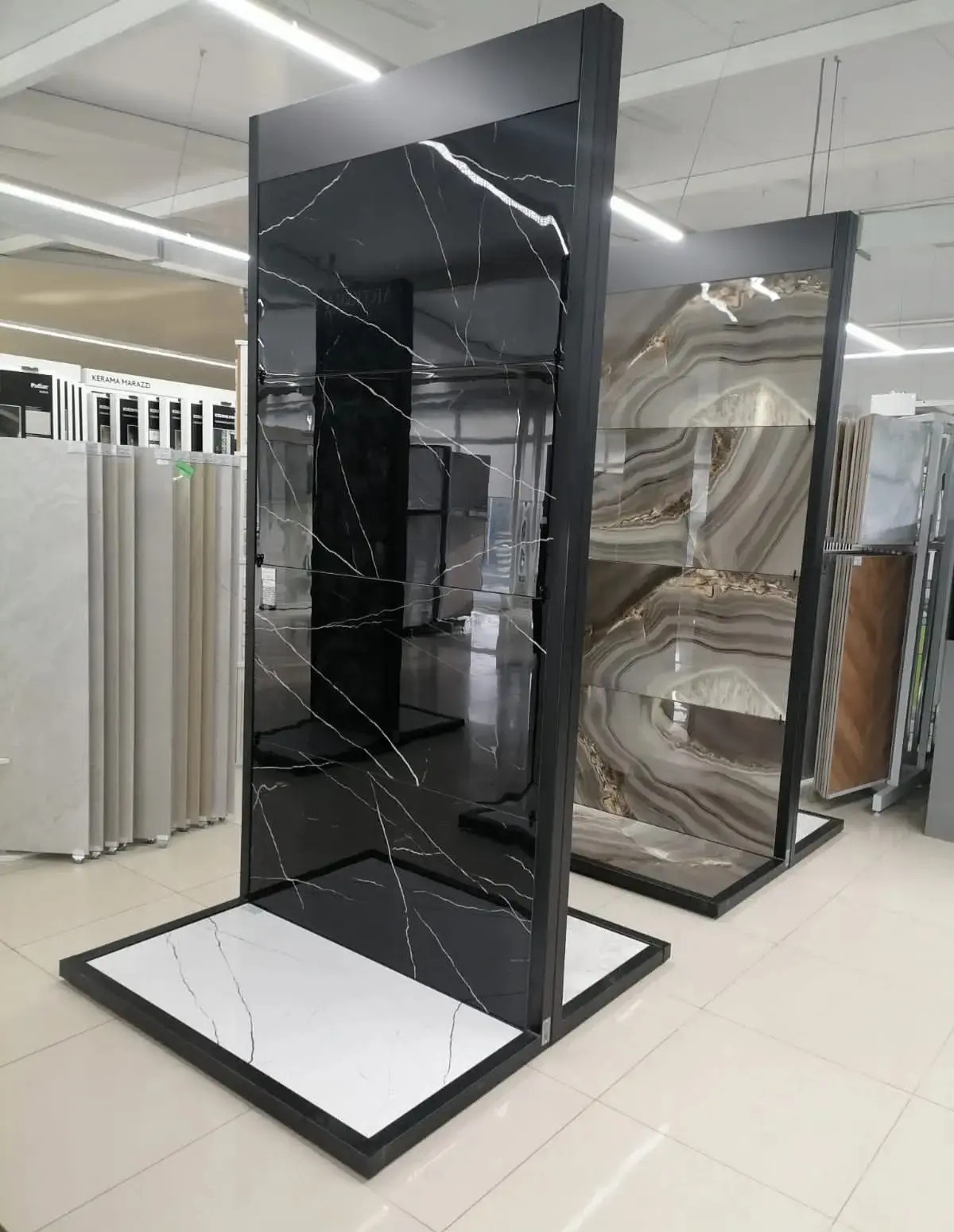 Предлагаем очень компактный,сборный,легкий экспозитор под плитку формата 1200мм*600мм.На стенде размещается пять коллекций.На фото стенд с горизонтальным расположением плит,возможно изготовление с вертикальным расположением.Кроме того возможно изготовление данного стенда под формат плитки 600*600мм.Цвет экспозитора любой,стенд окрашивается порошковой краской.Доставка по всем регионам РФ.